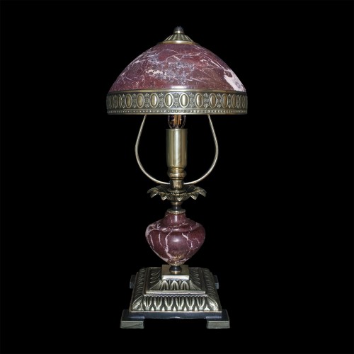 Основание – белый оникс, латунь. Абажур – ткань. Максимальная мощность лампы 100 Вт (Е 27).